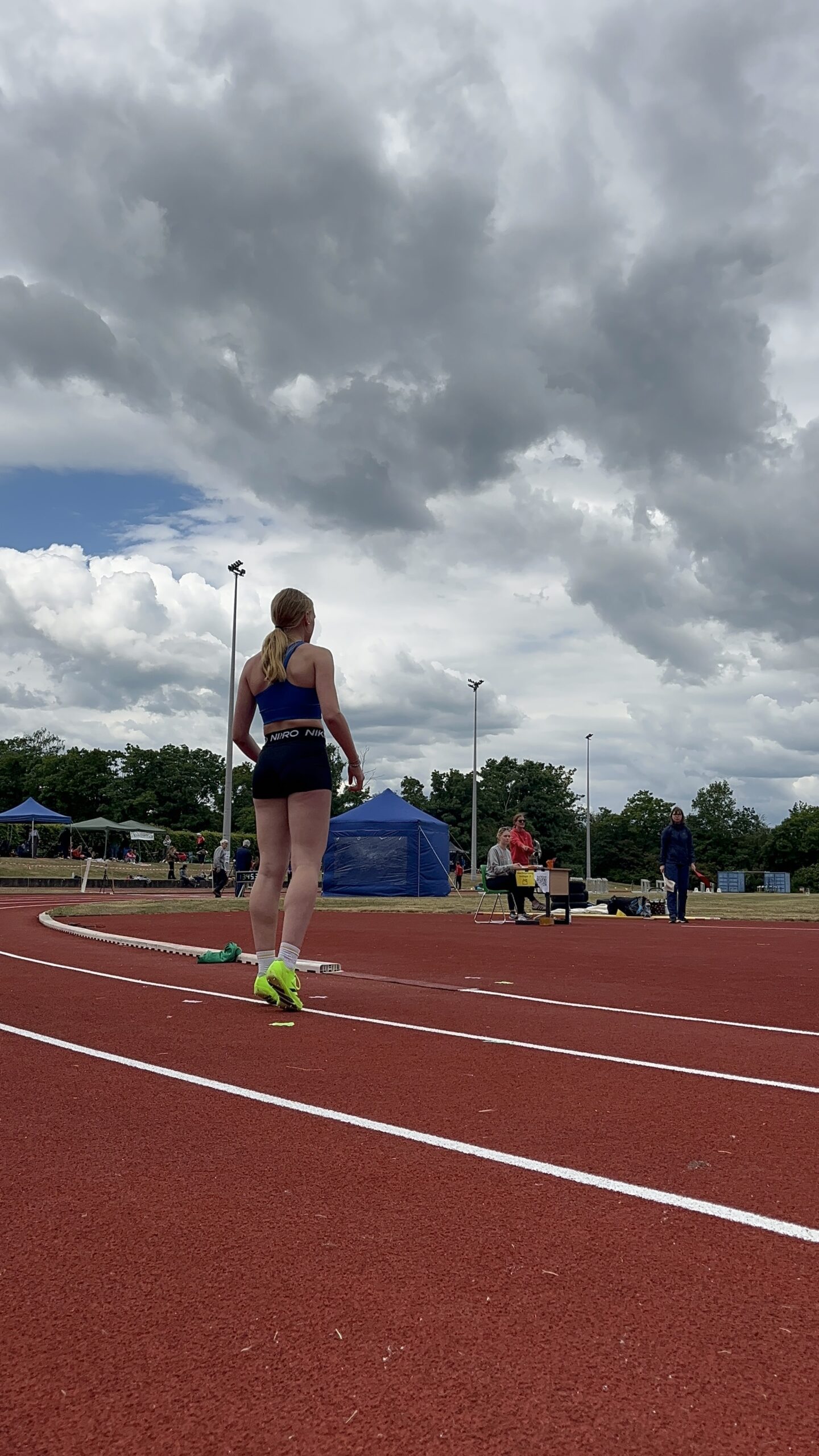 Am zweiten Tag ging es für alle Staderinnen weiter mit dem Siebenkampf, einige Athletinnen aus anderen Vereinen hatten sich derweil auf den Vierkampf beschränkt. Die erste Disziplin des Tages war der Speerwurf, die Paradedisziplin von Greta Pauli. Trotz einer leichten Verletzung im Fuß, die sie sich am ersten Tag zugezogen hatte, warf sie mit 35,15 m am weitesten und überbot alle anderen deutlich. Janika und Nike warfen in dieser Disziplin neue persönliche Bestweiten (23,40 m Janika und 20,31 m Nike).